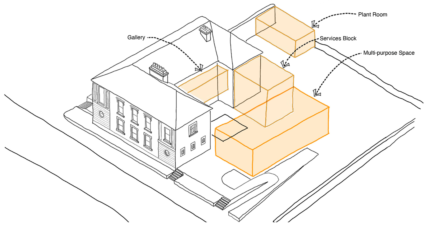 Availing of south facing light and providing a new front façade to the main street, this extension will also provide a much-improved arrival point for pedestrians on approach from the village.